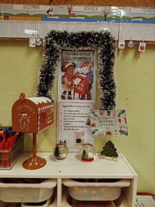 À l’approche de Noël, la classe se transforme en un véritable village de Noël dans lequel les élèves deviennent tour à tour lutins, décorateurs, facteurs…