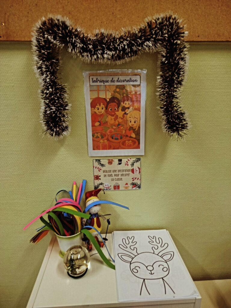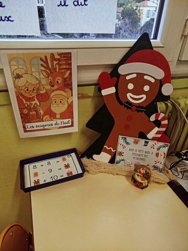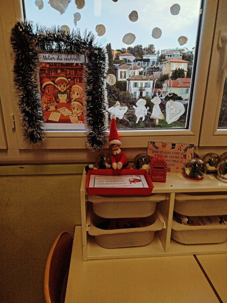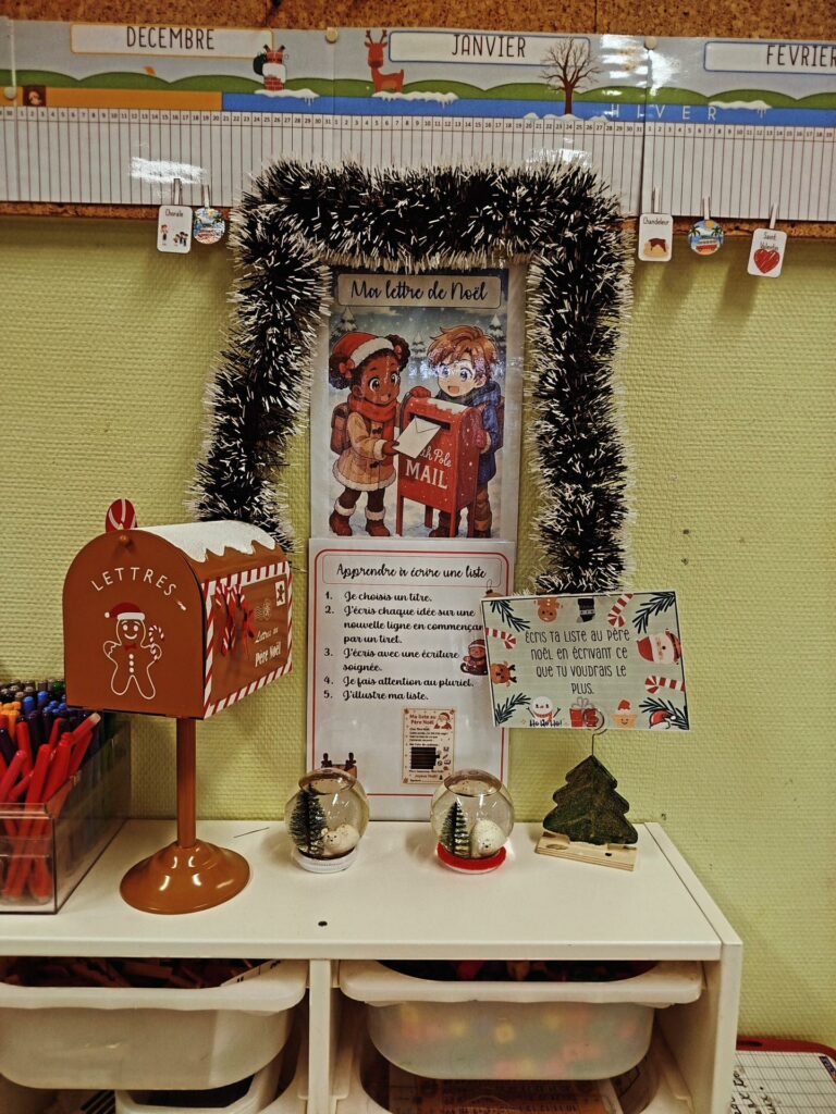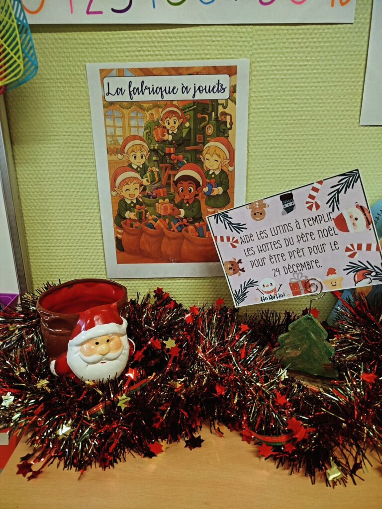 À l’approche de Noël, la classe se transforme en un véritable village de Noël dans lequel les élèves deviennent tour à tour lutins, décorateurs, facteurs ou encore assistants du Père Noël.