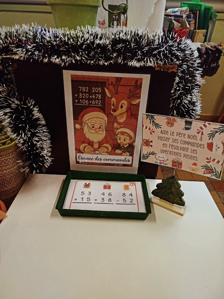 Chaque atelier correspond à un lieu emblématique du village de Noël et permet de réviser des compétences précises du programme de CE1, tout en favorisant l’autonomie et le plaisir d’apprendre.