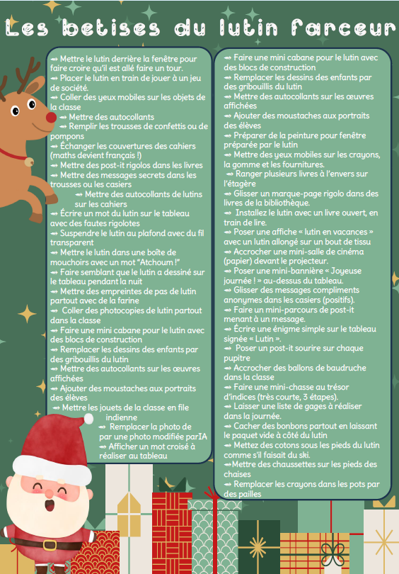 Chaque année en décembre, les lutins farceurs font leur grand retour pour semer des petites bêtises dans les classes… et créer de magnifiques moments de joie, d’étonnement et d’écriture !